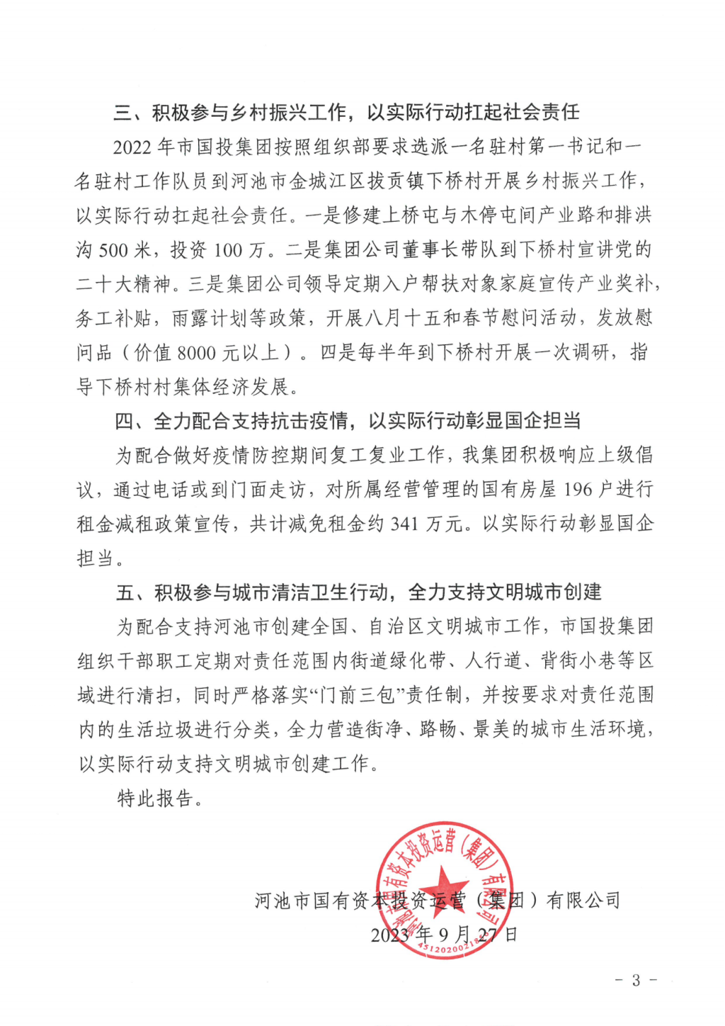 中共河池市國投集團公司委員會 關于落實市委第三輪巡察反饋問題 集中整改情況的通報 (社會公開稿)